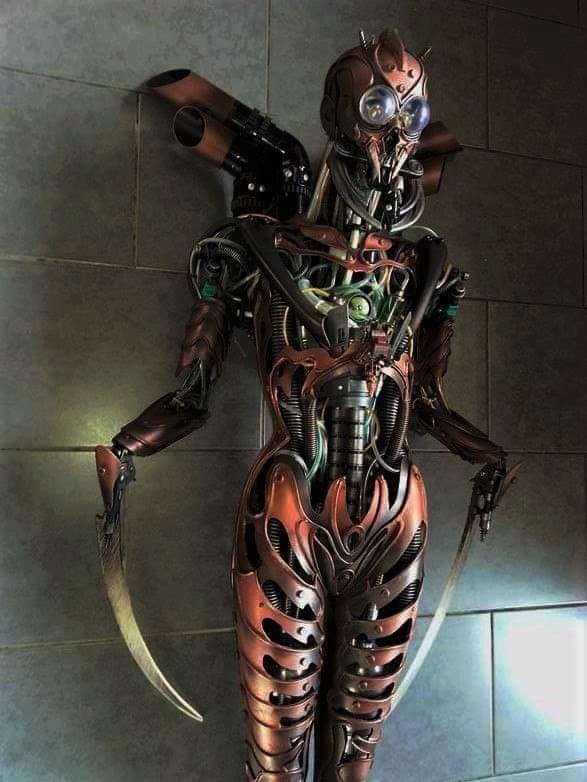 A3. My Alien sculpt is basically a mannequin conversion with part’s cut away and part’s added, i use anything i can find, salvage and recycle. Once i have the main form, i will sculpt using fibre glass, glues and epoxy putty, finding its flow was probably the hardest thing, as i did not want to copy directly, more looking than working in this respect but it is my favourite piece.